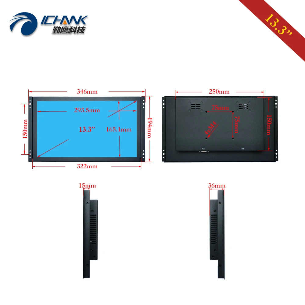 Related Products ZK133TC-25D/13.3" inch 1920x1080p 16:9 HDMI USB Embedded Open Frame Power On Boot Capacitive Touch